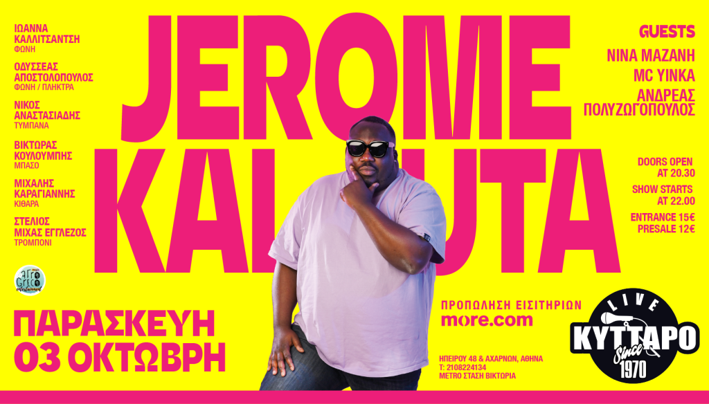 Μετά την επιτυχημένη πρώτη του εμφάνιση, ο Ζερόμ Καλούτα επιστρέφει για 2η φορά δυναμικά την Παρασκευή 3 Οκτωβρίου για το Opening του Κύτταρο Live Stage,  μια βραδιά  γεμάτη ρυθμό, πάθος και αυθεντική σκηνική ενέργεια.