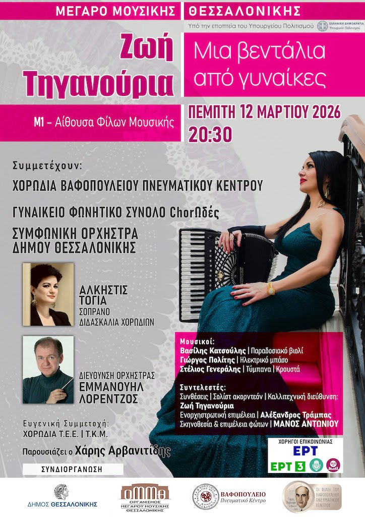 Διοργάνωση: ΜΕΓΑΡΟ ΜΟΥΣΙΚΗΣ ΘΕΣΣΑΛΟΝΙΚΗΣ – ΒΑΦΟΠΟΥΛΕΙΟ ΠΝΕΥΜΑΤΙΚΟ ΚΕΝΤΡΟ ΔΗΜΟΥ ΘΕΣ/ΝΙΚΗΣ ΣΕ ΣΥΝΕΡΓΑΣΙΑ ΜΕ ΤΟ ΣΩΜΑΤΕΙΟ ΦΙΛΩΝ ΒΑΦΟΠΟΥΛΕΙΟΥ ΠΝΕΥΜΑΤΙΚΟΥ ΚΕΝΤΡΟΥ